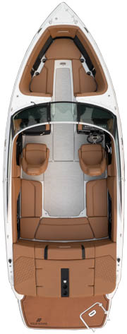 Graceful Four Winns lines have been elongated through the bow and the stern for a sleek profile. A tall hull and a low-profile deck maintains a timeless look from every angle. The introduction of a vertical stem profile and a curve windshield add at the boat an iconic design. The stainless stell suntop is perfect to protect you from the hottest days on Lake Como.